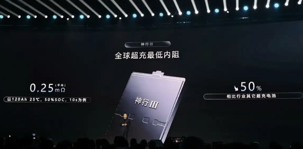 軽量化の面でも第3世代神行超充電池は突破を達成しており、バッテリーパックの重量は650キログラム(kg)以内に抑えられ、市場で同等の航続距離クラスのリチウムイオン電池と比べて255kgの軽量化を実現した。安全面では、バッテリーが凝縮状態技術にアップグレードされ、液体が漏れる構造を排除することで、従来の液体電解質の漏洩による発火・爆発のリスクを根本から取り除いた。